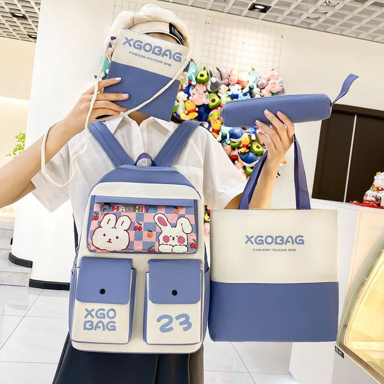 قسمت جلویی کیف با طرح چاپی خرگوشهای بامزه تزئین شده که استایل کودکانه و دلنشینی بهش میده. مناسب برای مدرسه، دانشگاه یا سفرهای کوتاه.