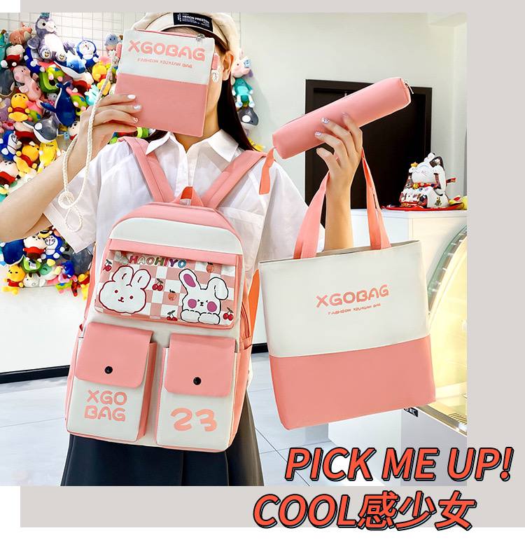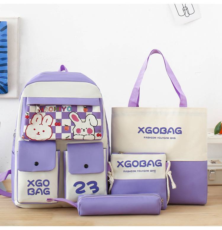 قسمت جلویی کیف با طرح چاپی خرگوشهای بامزه تزئین شده که استایل کودکانه و دلنشینی بهش میده. مناسب برای مدرسه، دانشگاه یا سفرهای کوتاه.