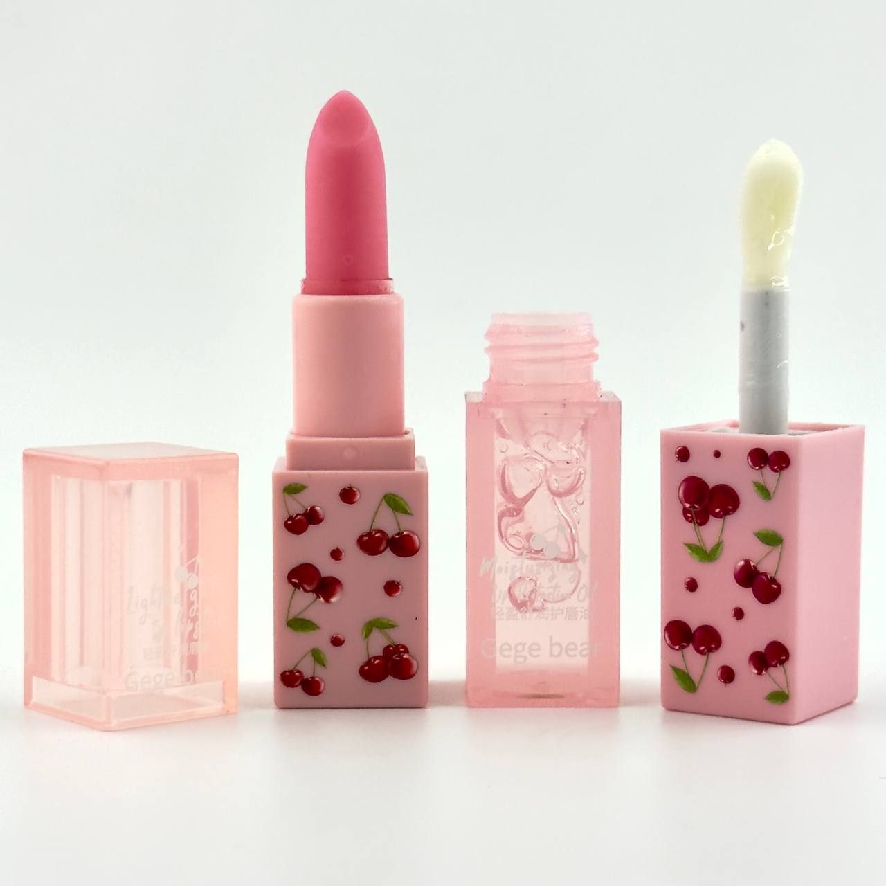 حاوی یک عدد بالم لب + یک عدد برق لب: بدون رنگ روی لب طرح گیلاس
